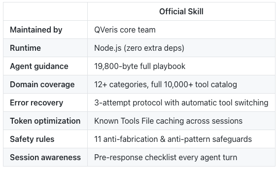 But as QVeris's capabilities have grown to 10,000+ tools across dozens of domains, we realized the agent needs deeper guidance to use the platform effectively. So we built the official skill from the ground up.